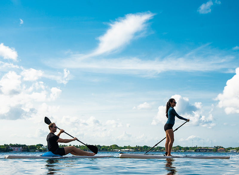 Keep your personal items with you while you’re on the water. Throw smaller belongings in the water-resistant pouch and store them safely inside one of three storage cavities. Swap out your belongings for your board’s accessories when the adventure ends.